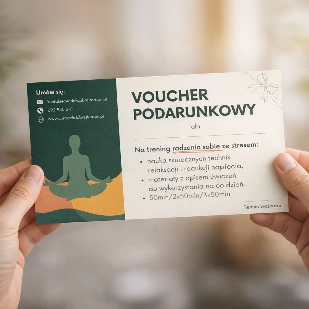 Szukasz wyjątkowego prezentu dla bliskiej osoby? Voucher Ośrodka Dobrej Terapii to możliwość zadbania o rozwój i dobre samopoczucie osoby, którą chcesz obdarować. W naszej ofercie znajdziesz do wyboru: Program Rozwoju Talentów, trening asertywności oraz trening radzenia sobie ze stresem. Termin ważności to 1 rok.